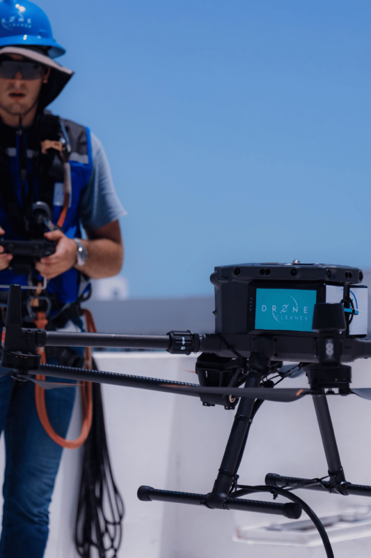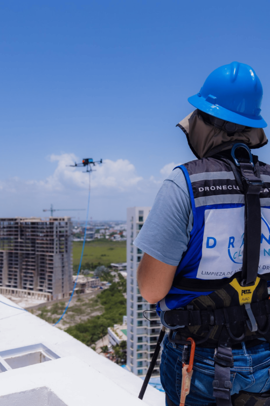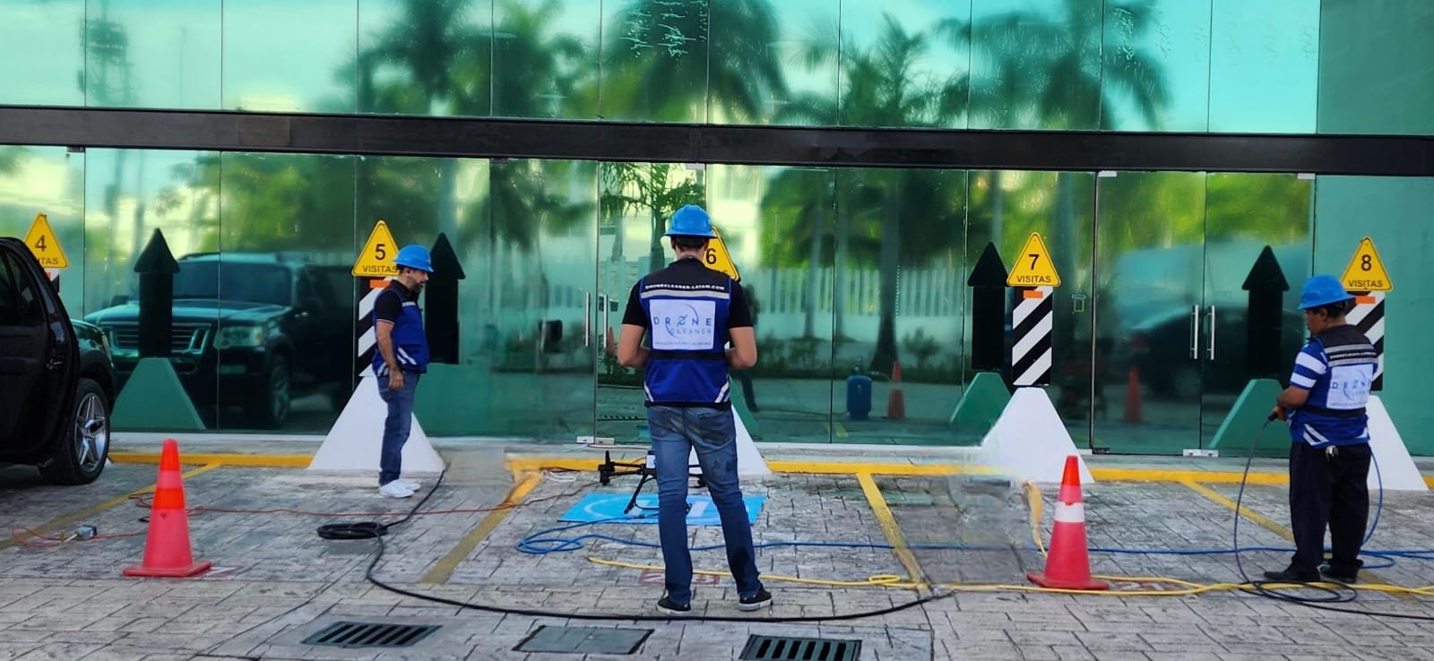 Somos una empresa mexicana buscando innovar y transformar las formas de limpieza de una manera mas eficaz y segura. creando asi maneras de prevenir el riesgo para los trabajadores y alrededores Creamos un modelo único de limpieza el cual consiste en un dron que limpie toda la superficie exterior de forma segura y eficaz El modelo de drone es mas grande de lo habitual, por el cual le SUSTENTA una manguera DE ALTA presión que esta ALIMENTADA desde la superficie y de esta forma el drone genera su mapeo del trabajo y lo ejecuta, siempre comandado por un piloto.